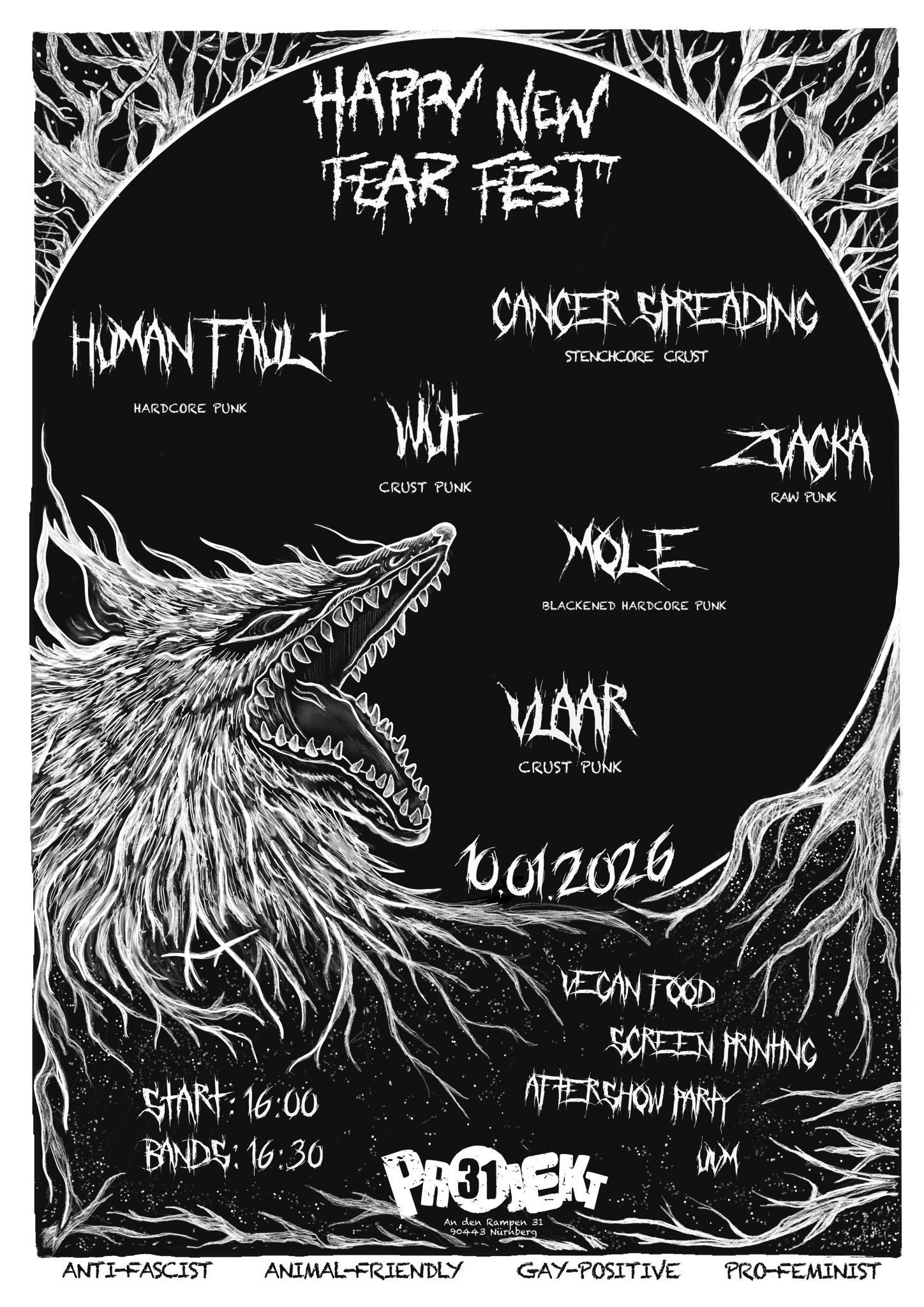 Während die Welt kollektiv ins Burnout rennt, feiern wir den Beginn des neuen Jahres dystopisch und frustriert beim Happy New Fear Fest im Projekt31 in Nürnberg.